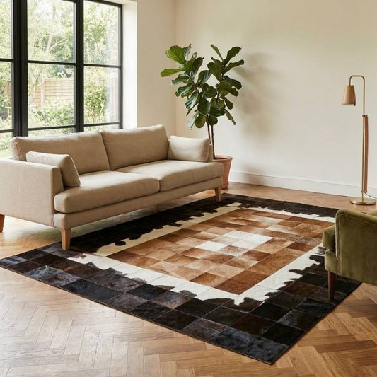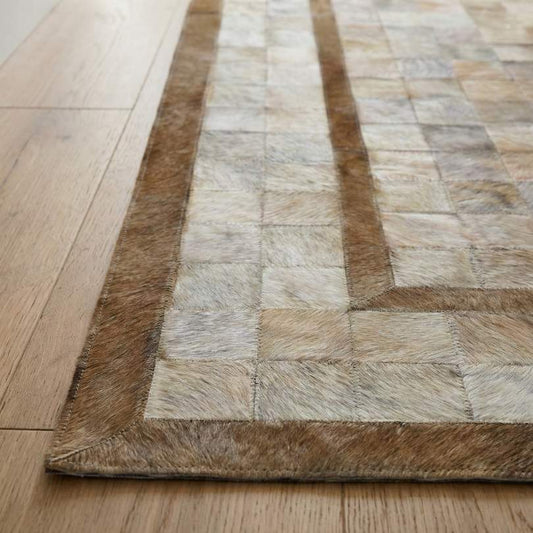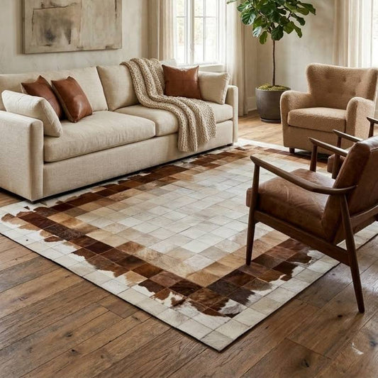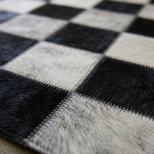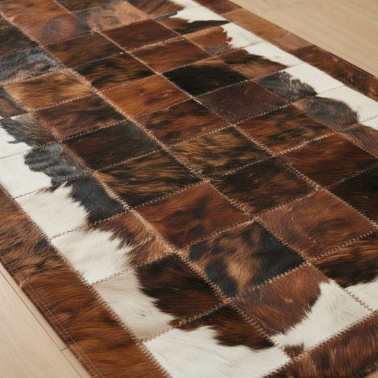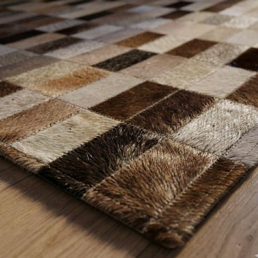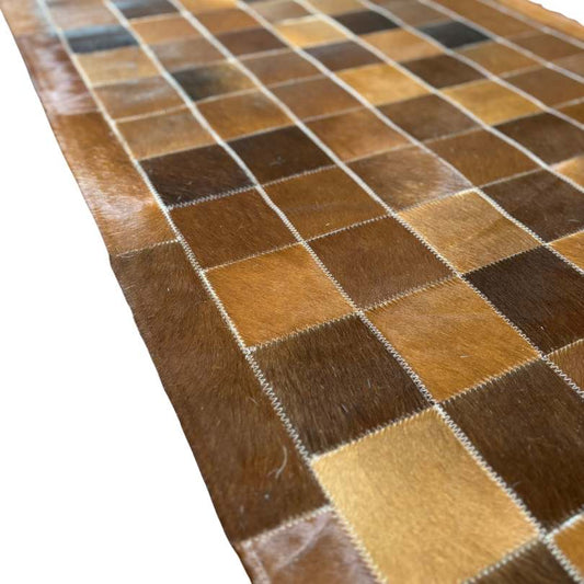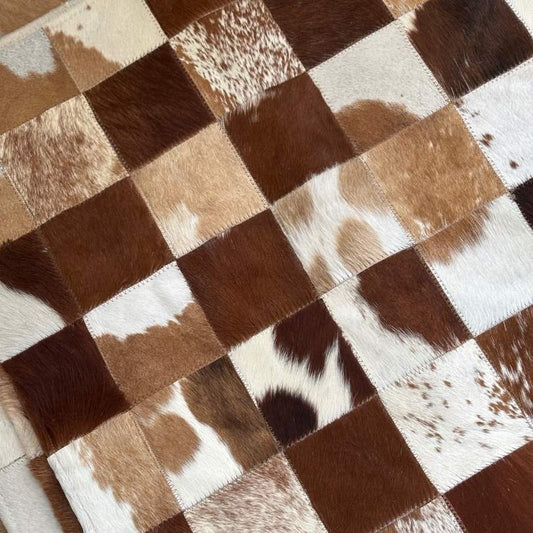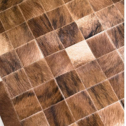 Tapete de Couro Quadriculado Marrom e Branco - Tamanho 1,5x2m