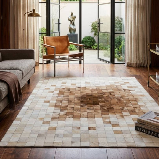 Tapete Pampa de Couro Quadriculado Tons Claros - Módulo 10x10 cm