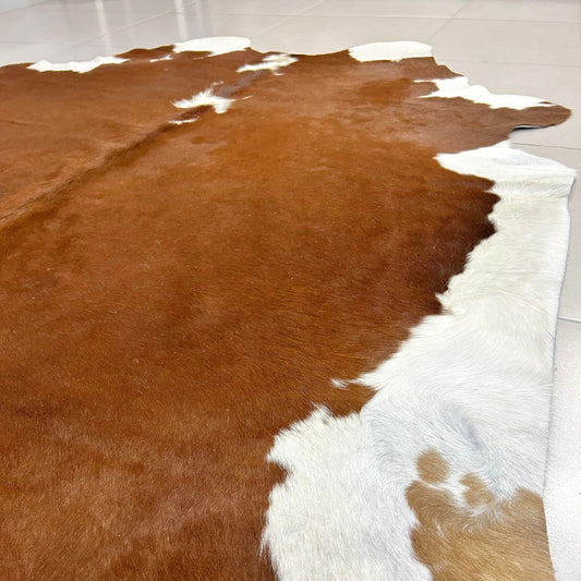 Tapete Bovino Natural Vermelho e Branco I VB344 I 2,32 x 2,14 m