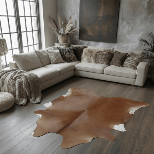 Tapete Bovino Natural Vermelho e Branco I VB375 I 2,11 x 2,08m