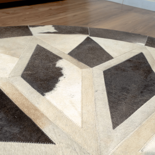 Transforme seu ambiente com o Tapete Mandala Estrelar, uma peça artesanal feita em couro natural que combina tons neutros e formas geométricas em perfeita harmonia. Seu design em formato de estrela cria um efeito visual marcante, ideal para quem busca sofisticação e originalidade na decoração.